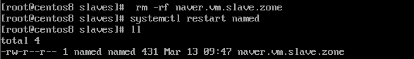 혹시 계속 수정 전 파일을 읽어오는건 아닐까 싶은 생각이 들었습니다. 그래서 아예 slave.zone 파일을 삭제하고 restart로 다시 slave.zone 파일을 생성해보았습니다.