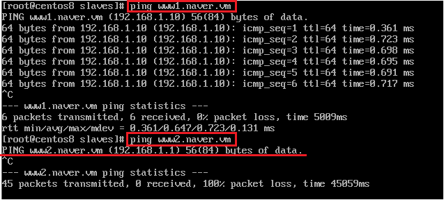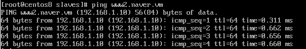 확인해보니 www2 의 ping도 이제 잘 가고 있습니다! 주영역의 zone파일을 수정하게 되면 단순히 restart만 적용한다고 수정되는 부분이 아니었습니다. 보조영역의 생성되어있던 기존 slave.zone 파일을 삭제 한 후에 다시 생성해줘야 그제서야 제대로 적용된다는 새로운 사실을 이번에 알 수 있었습니다.