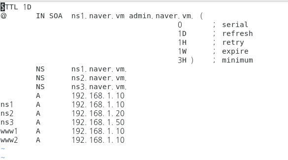 주영역의 naver.vm.zone 파일에 www2의 ip주소가 잘못된 상황이라 마지막 1을 10으로 수정해주었습니다.