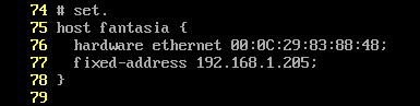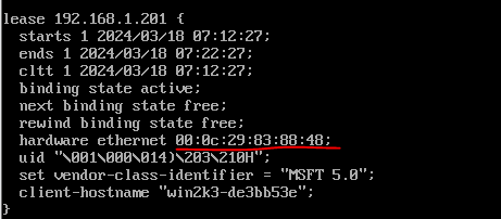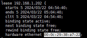 # hardware ethernet 00:0C:29:D7:23:E3;