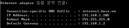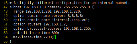 option domain-name "internal.kosa.vm"; # 도메인 이름 "internal.kosa.vm"(DNS 이름)