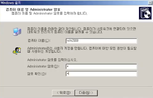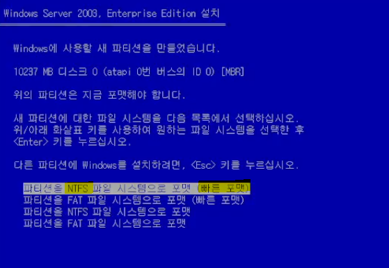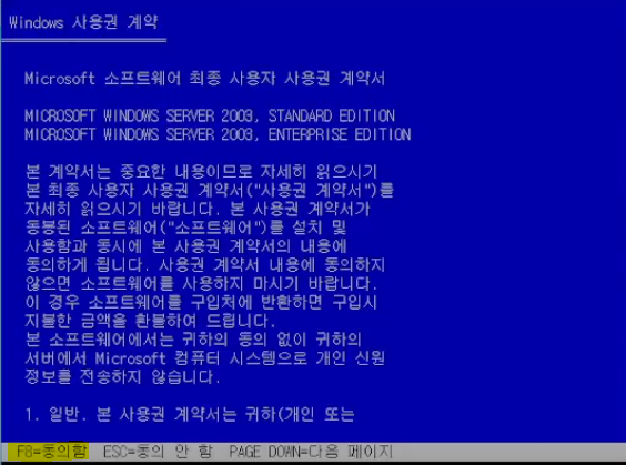 하드디스크는 리눅스용, 윈도우2003용 두개 모두 설치합니다.