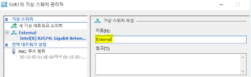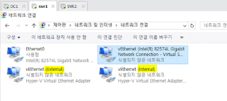 마지막 이미지를 보면 external과 internal 가 추가 된 것 확인 가능합니다. ip는 자동으로 설정되어 있습니다. (private은 가상머신 끼리 통신하니까 스위치가 없음) 이제 도메인에 가입시켜주면 됩니다.