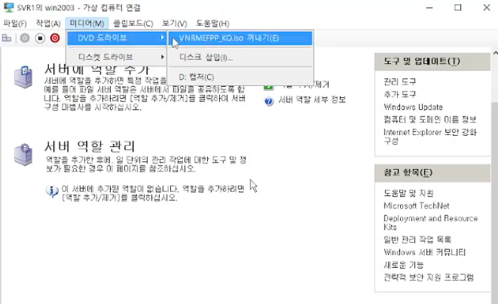 window2003은 버전이 낮아서 vmware tool 을 이미지를 활용해서 다운로드 해줘야합니다. vmgest.iso 파일을 통해 다운로드 하시면 됩니다.