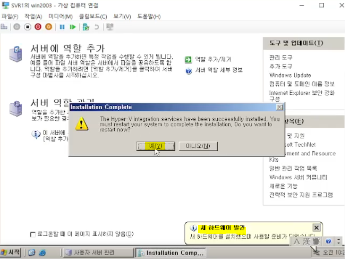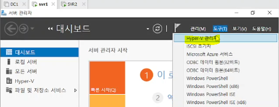 : 서버관리자 > 역할 및 기능 추가 > hyper-v 체크 > 완료