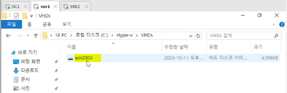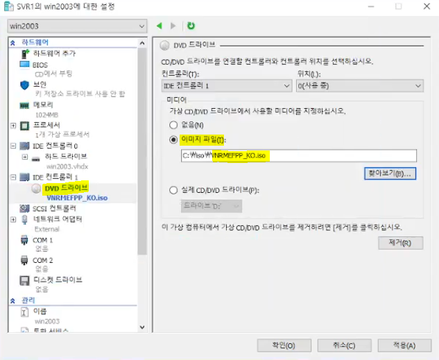 # 가상 컴퓨터 설치(윈도우2003)