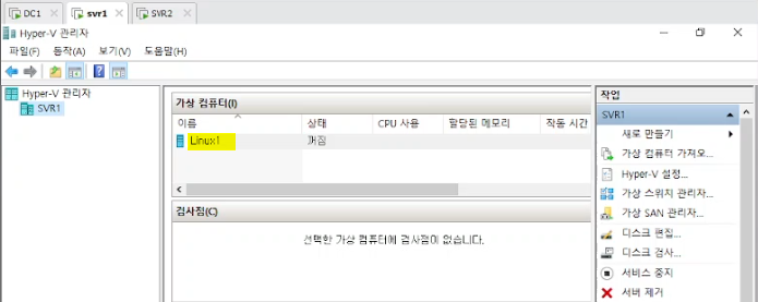 dc1, svr1, svr2 : memory 4096, cpu 2개 2개,